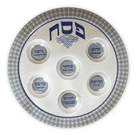 Add a touch of elegance to your Seder evening with this beautiful Melamine Seder Plate, available in stunning blue or silver. The plate features colorful illustrations of the traditional Passover foods, and each of the 6 bowl-shaped indentations is clearly labeled with the names of the foods in both Hebrew and English. The word "Pesach" (Passover) is displayed at the top in Hebrew, enhancing the plate's meaningful design. With a width and height of 14 inches, this plate is the perfect size for your Seder table, blending both tradition and style.